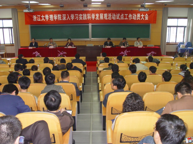 王玉芝副书记作科学发展观的专题辅导报告。她在报告中指出,开展深入学习实践科学发展观活动,是党的十七大作出的一项重大的战略部署,也是浙江大学深刻总结过去十年、科学谋划未来十年的难得机遇。王玉芝副书记结合学校中心组的学习以及周济部长在浙大的讲话,谈了对科学发展观的认识和体会:(一)结合浙江大学四校合并以来十年的发展,从学校的教学、科研、学科建设、地方服务等多方面阐述了科学发展观的四大精神内涵;(二)通过开展学习实践科学发展观活动,努力在浙大形成“科学发展、改革创新、走在前列、争创一流”的良好局面,只有在理念、发展战略、管理机制、人才培养、资源配置等方面和谐地促进发展,才能把浙江大学真正办好;(三)科学发展观,科学、发展是它的本质,改革和创新仍放在第一位。王玉芝副书记希望理学院的所有同志能融入到学习实践科学发展观活动中来,建言献策,共同谋划浙江大学和理学院未来十年的发展规划。