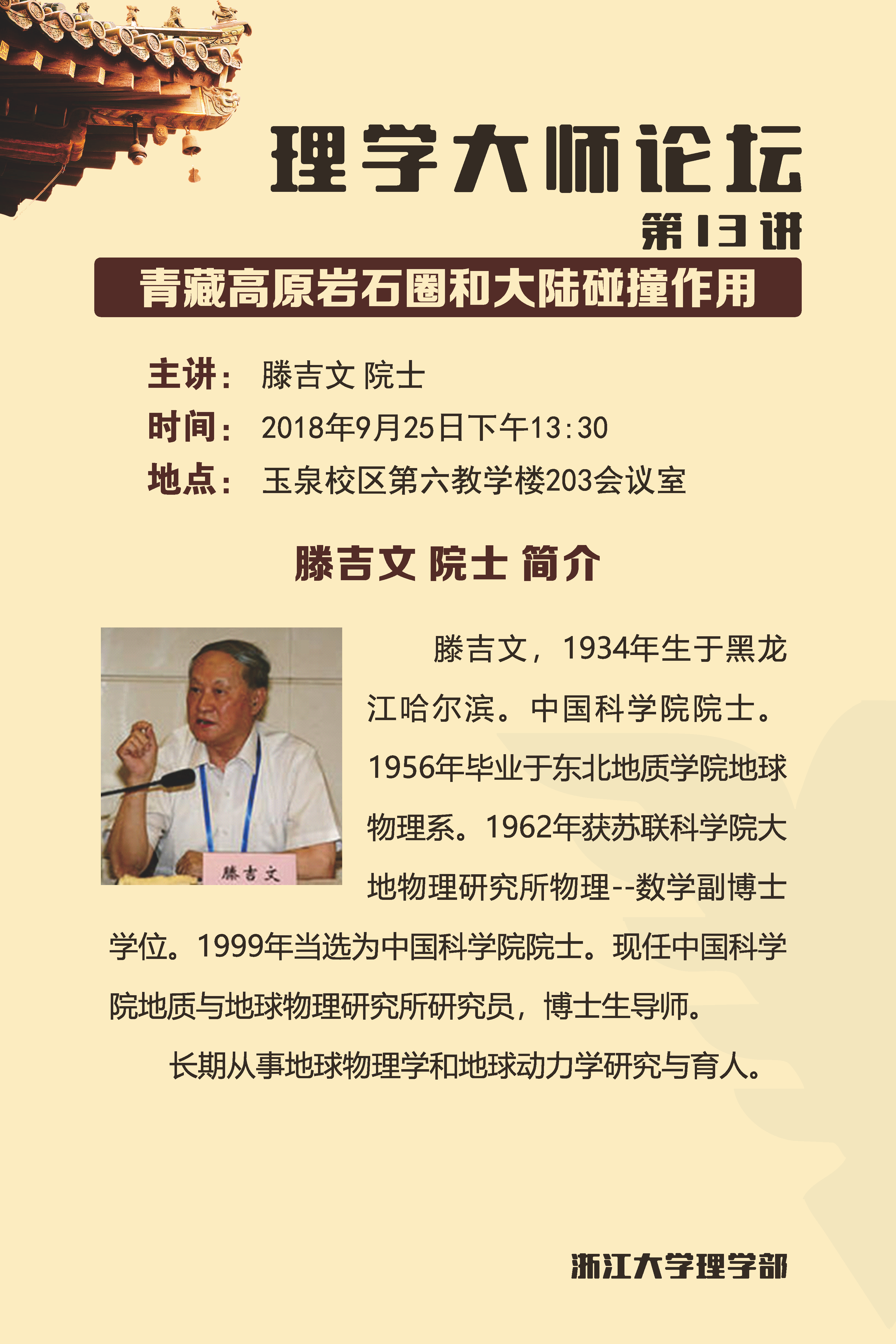 “理学大师论坛”第十三讲――滕吉文院士:青藏高原岩石圈和大陆碰撞作用