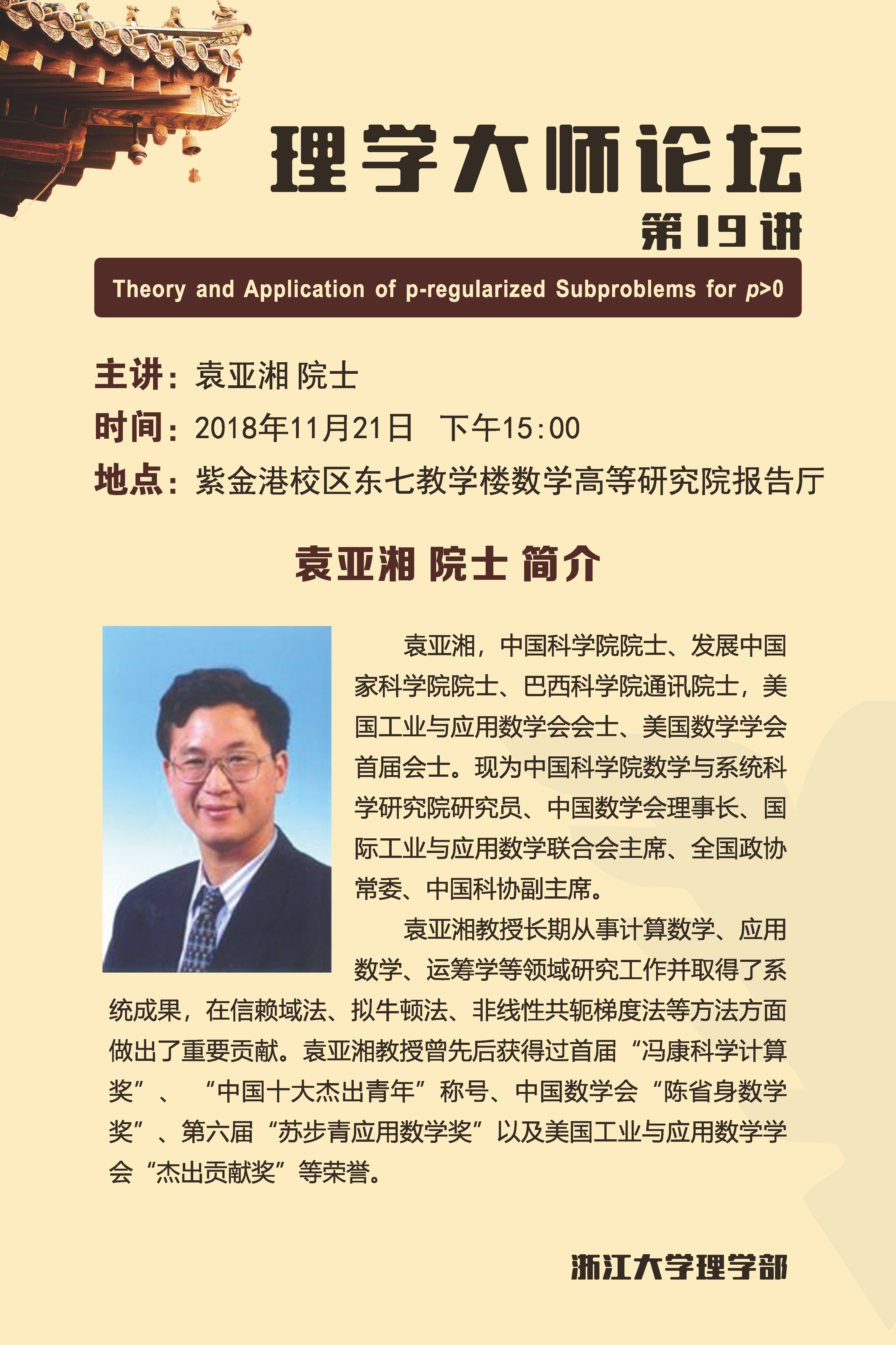 “理学大师论坛”第十九讲――袁亚湘院士:Theory and Application of p-regularized Subproblems for p>0