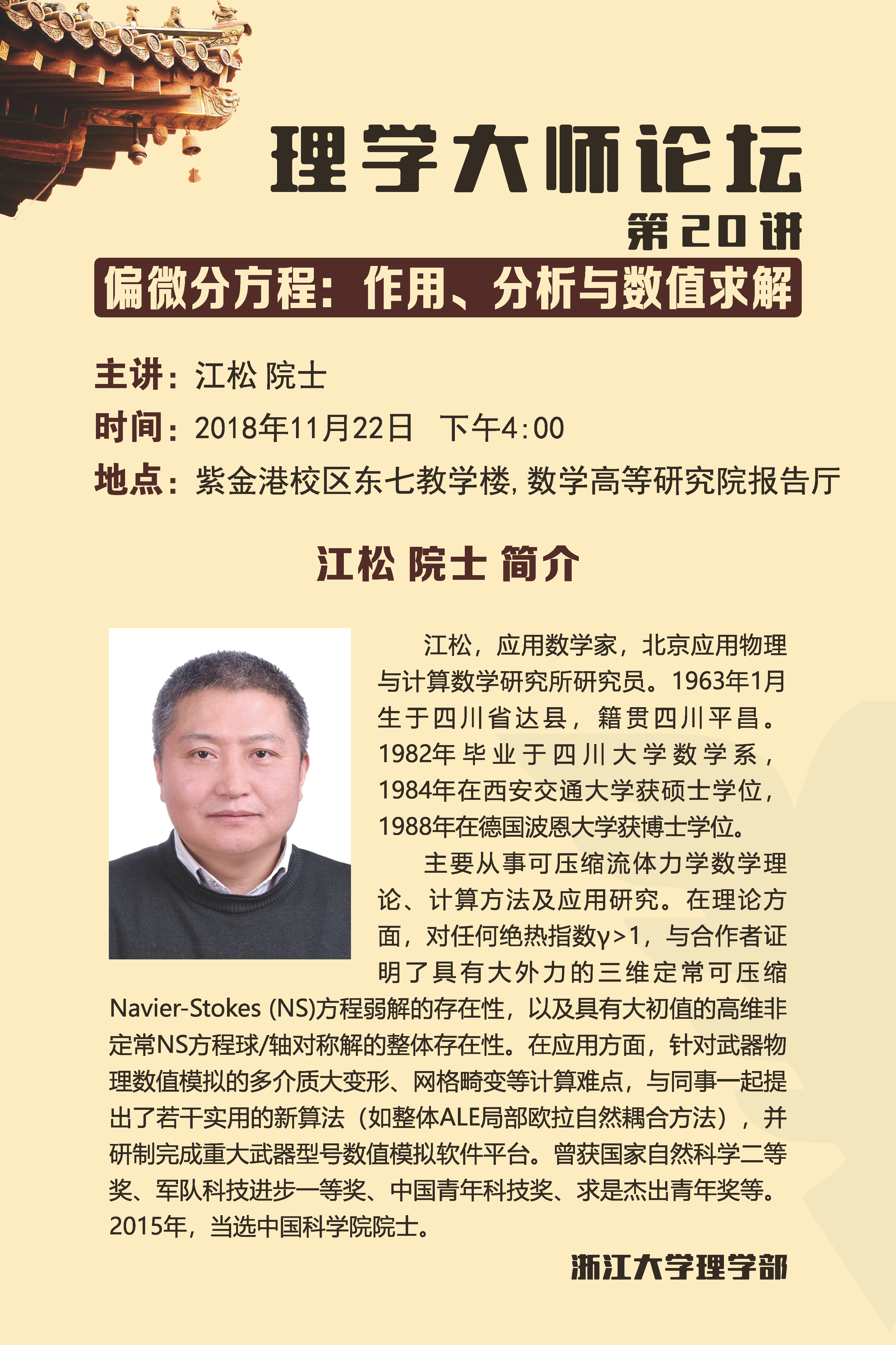 “理学大师论坛”第二十讲――江松院士:偏微分方程:作用、分析与数值求解