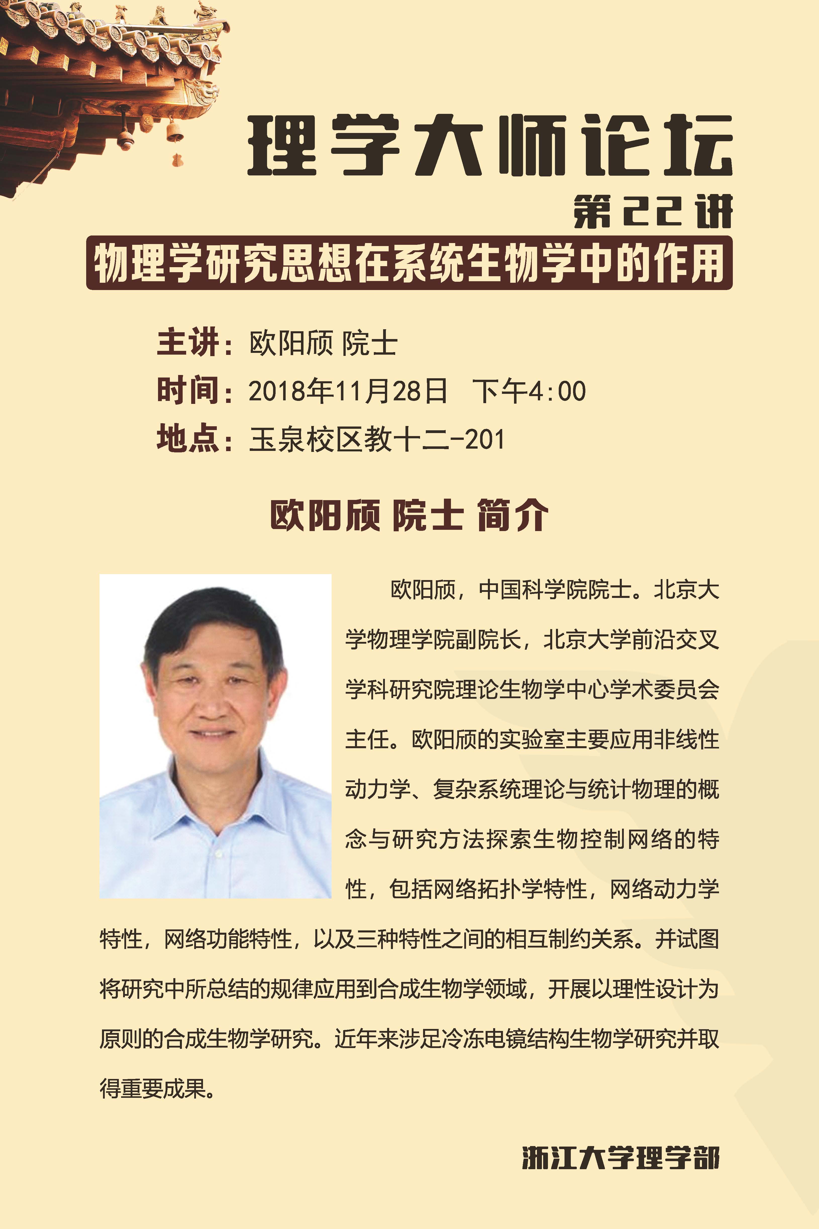 "理学大师论坛"第二十二讲――欧阳颀院士:物理学研究思想在系统生物学中的作用